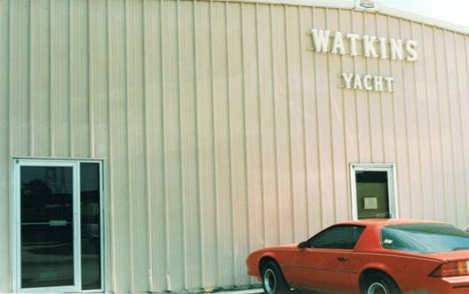 Last Address: Watkins Yachts Inc. Div of McLaughlin Body Co. 12645-49th Street North, Clearwater, Fl. 33520 Boat Production The Watkins Company built slightly more than 1,280 sailboats and over 210 power boats between August 1973 and November of 1989. The photo at right was taken in 1988 of the front of the factory. Additional photos are at the end of this article. |