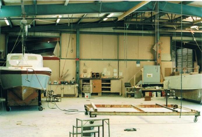 Photo above of factory interior. Boat on left is a Seawolf 22 ft. walk around.