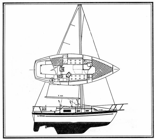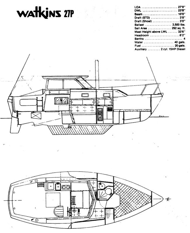The W27 is sloop rigged, shoal draft, with a partial skeg rudder. She has sleeping accommodations for five, including a V-berth, settee berth and double quarter berth. The enclosed head is forward on the port side with hanging locker and storage opposite. The galley is aft to starboard. A Yanmar diesel was standard. There are six opening ports and two hatches. Standing headroom is 62 in the main salon. Early models had 2 or more ports which did not open.